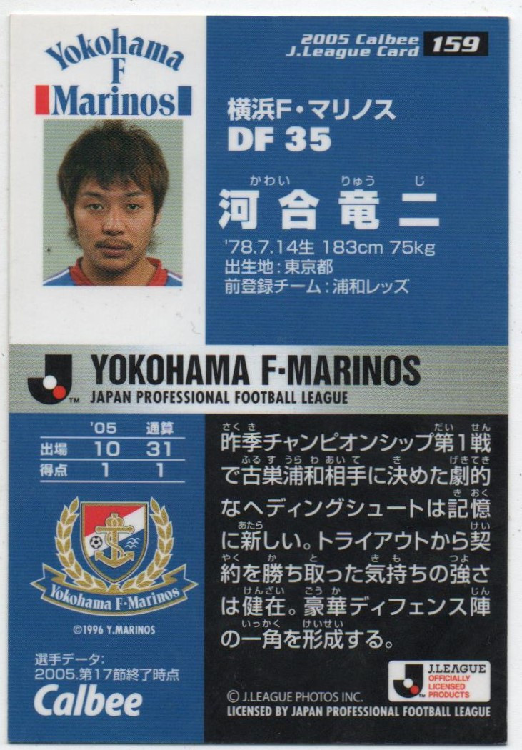 J-League Card n° 159 (KAWAI, Yokohama F. Marinos)