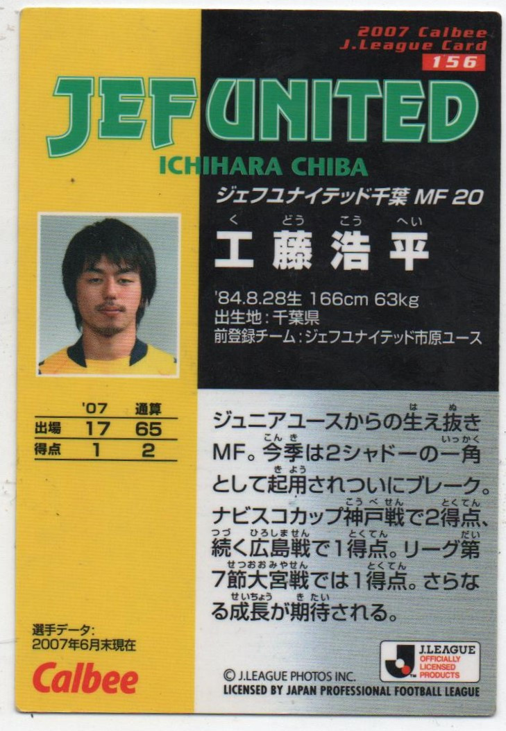 J-League Card n° 156 (K. KUDO, Jef United Ichihara Chiba)