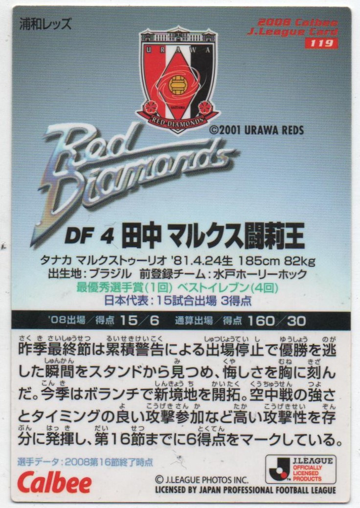 J-League Card n° 119 (Tulio, Urawa Red Diamonds)