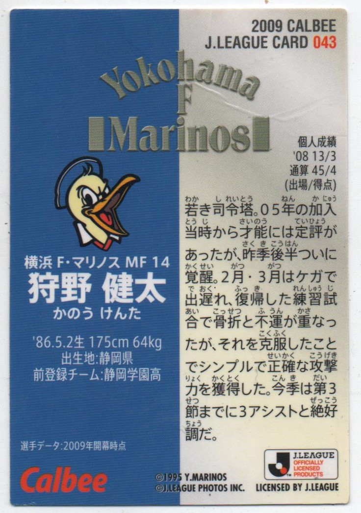 J-League Card n° 043 (KANO, Yokohama F.Marinos)