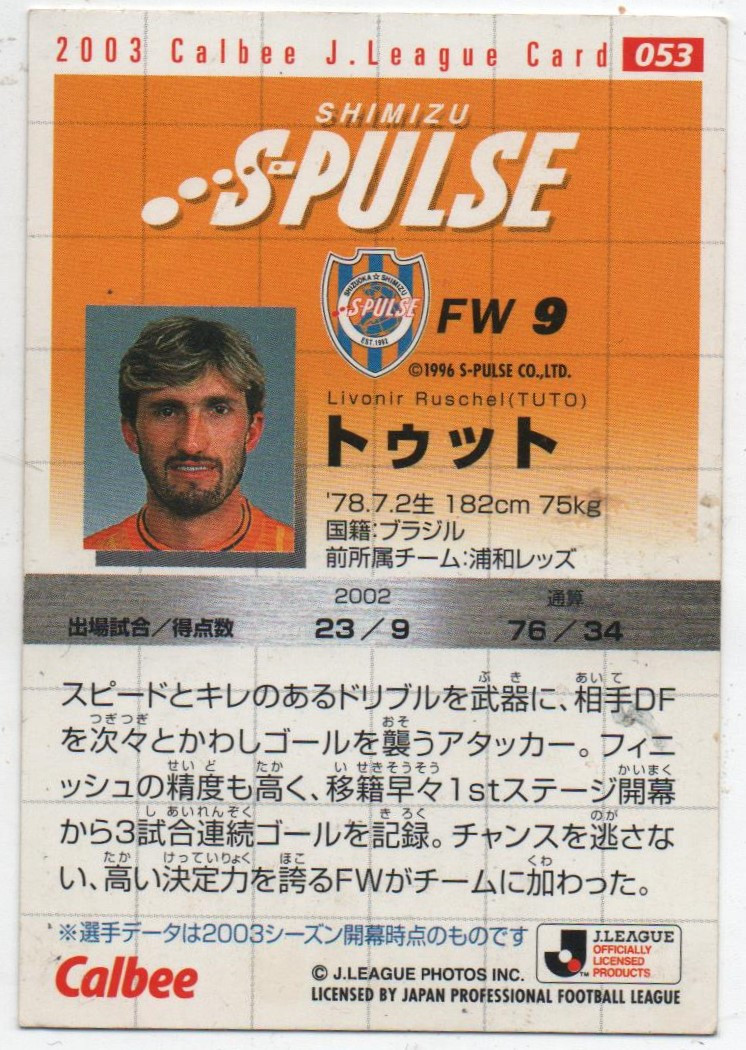 J-League Card n° 053 (TUTO, Shimizu S-Pulse)