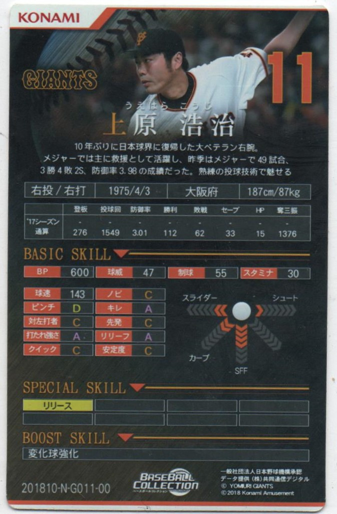 n° 10-N-G011-00 (YOMIURI Giants, Uehara Koji)