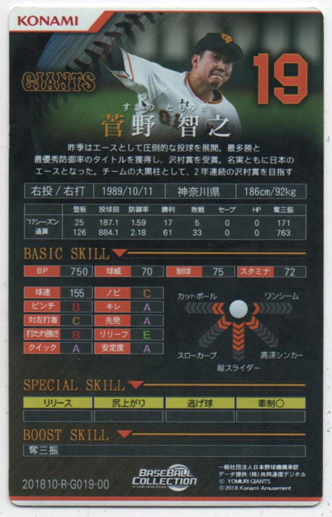 n° 10-R-G019-00 (YOMIURI Giants, Sugano Tomoyuki)