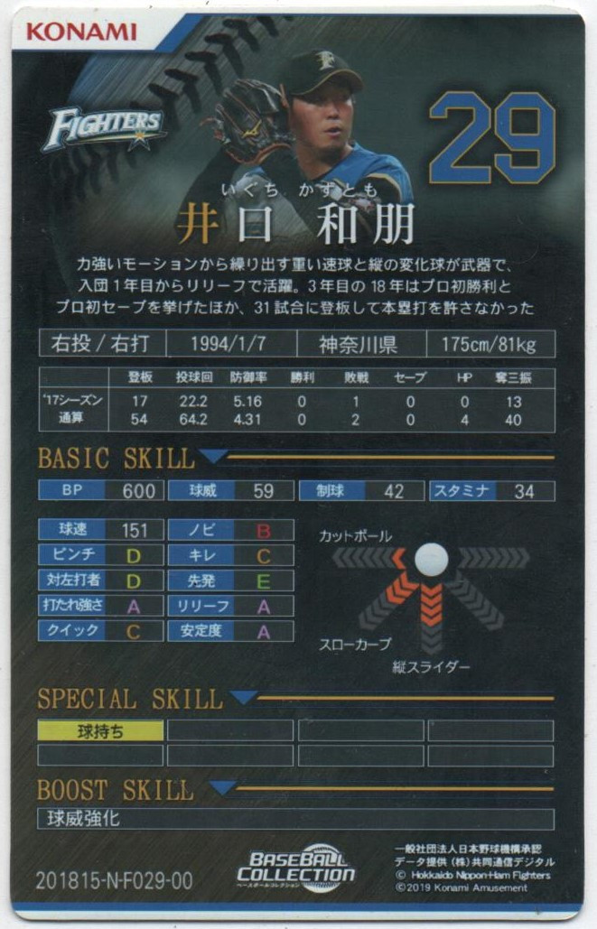 n° 15-N-F029-00 (HOKKAIDO Nippon-Ham Fighters, Iguchi Kazutomo)