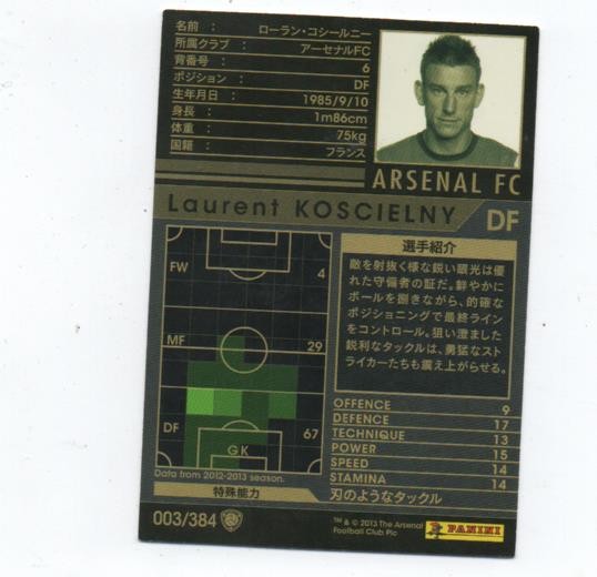 N° 003/384 (Laurent KOSCIELNY, Arsenal FC)